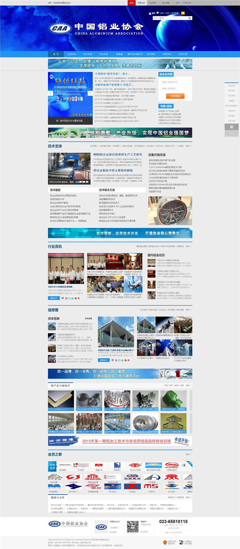 Project Description 中国铝业协会是由中国国内主要从事铝合金铸造、板、带、箔、管、棒、型材、锻件等企业组成的行业协会组织,协会由国内具有一定规模和影响力的企业发起,已有三百多家会员企业,目前还有很多企业踊跃希望加入,协会现有会员企业年销售额1000多亿元人民币,协会会员企业分布在国内华东、华南、西南、环渤海、东北、胶东半岛等中国经济活跃地区;产品涵盖航空航天、兵器装... Official website address 克孜勒苏柯尔克孜http://www.caa2014.com I want to share